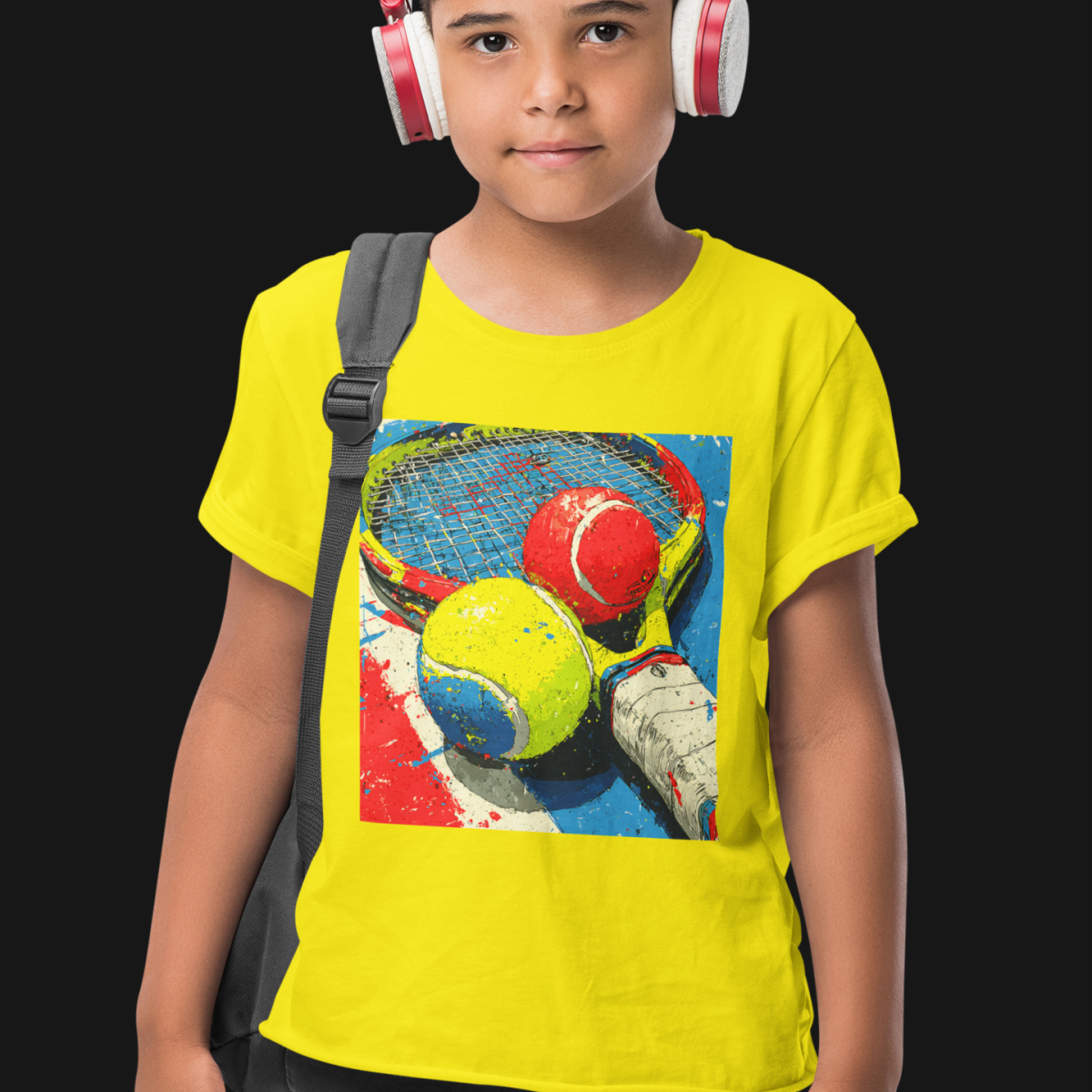 A estampa aplicada nesta camiseta traz um visual artístico e esportivo, com inspiração no tênis, combinando cores vibrantes, raquete e bolas em um estilo moderno e criativo. Esse detalhe transforma a peça em algo único, ideal para crianças que gostam de se destacar com roupas divertidas e cheias de personalidade.