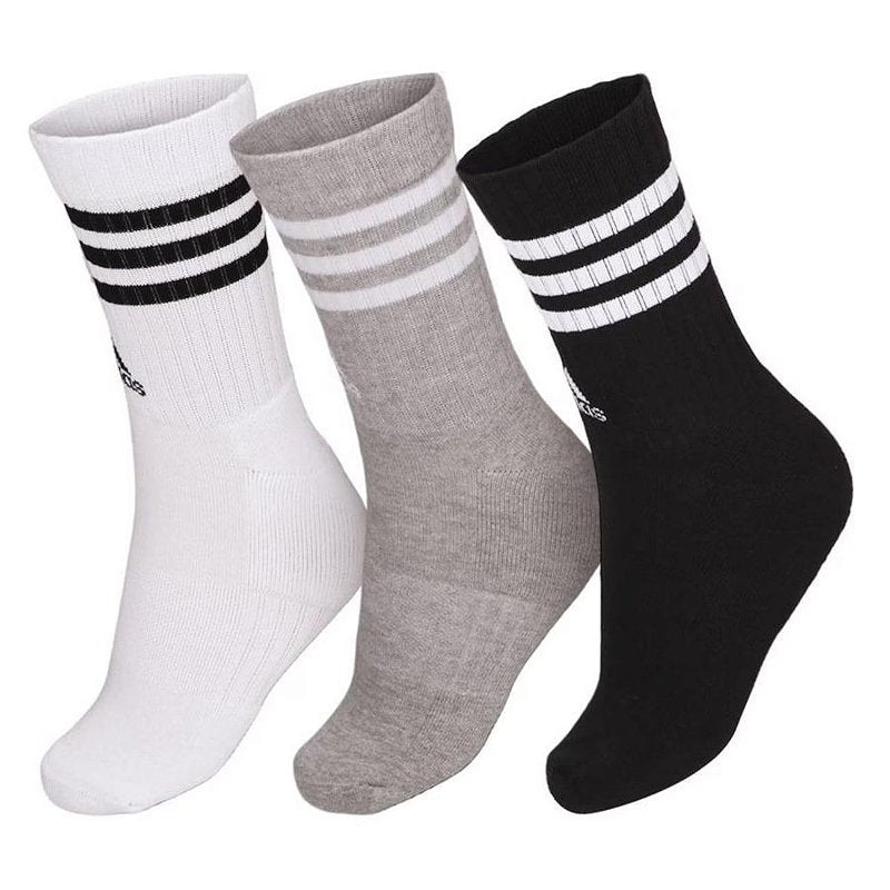 - Detalhamento: Embalagem com 03 pares de meias nas cores branca cinza e preta, com listras brancas, cano alto (aproximadamente 14m), escrita Adidas no cano na cor preta, suave compressão na região do médio pé, veste do 38 ao 40, tecido macio;